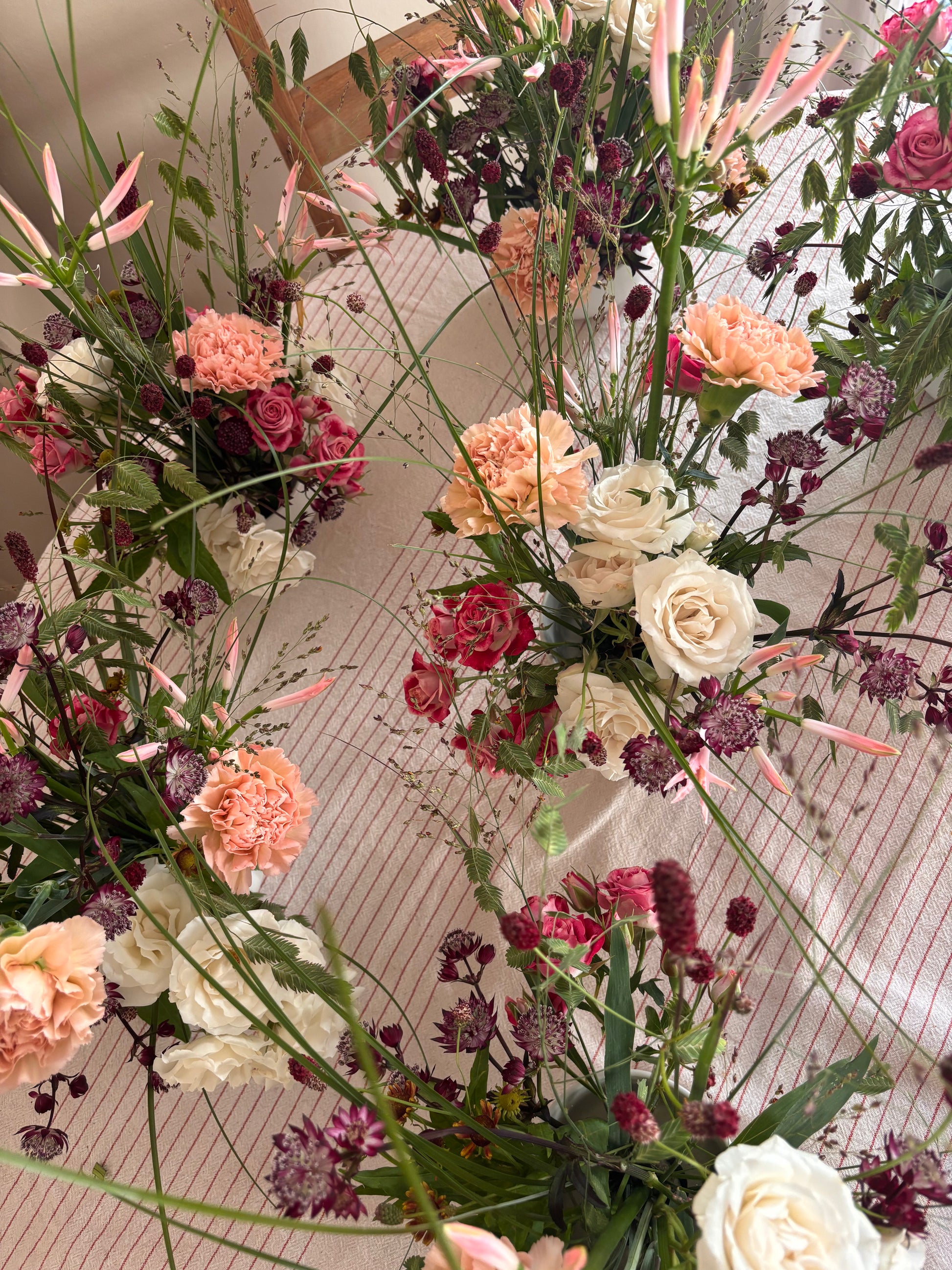 Our Dinner Table Flower Bowls offer elegant arrangements crafted with traditional frog pin techniques, eliminating the use of foam for a natural, sustainable design. Presented in a small bowl, these arrangements can be tailored in quantity to suit your event size, providing expert floral styling that enhances any dining setting with refined simplicity.