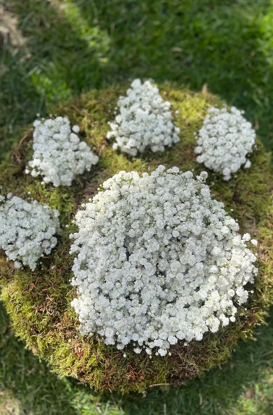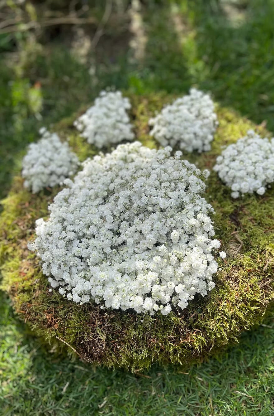 This exquisite posy features a lush pad of moss artfully topped with delicate gypsophila blooms arranged in the shape of a paw. Expertly crafted, it captures a subtle tribute to your beloved pet, blending natural textures and soft floral accents for a unique and heartfelt display. Ideal for memorials or special occasions, this arrangement offers a tasteful and elegant way to honor a dearly missed loved one.